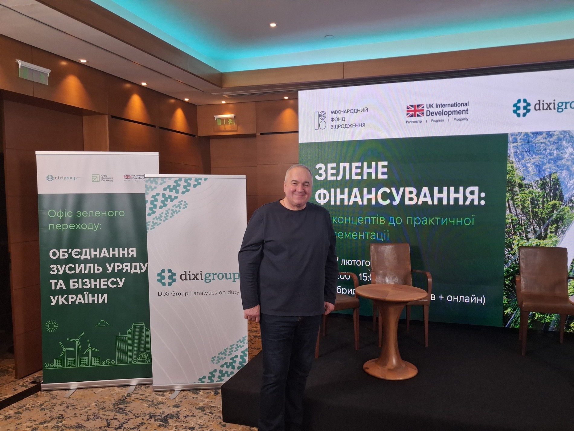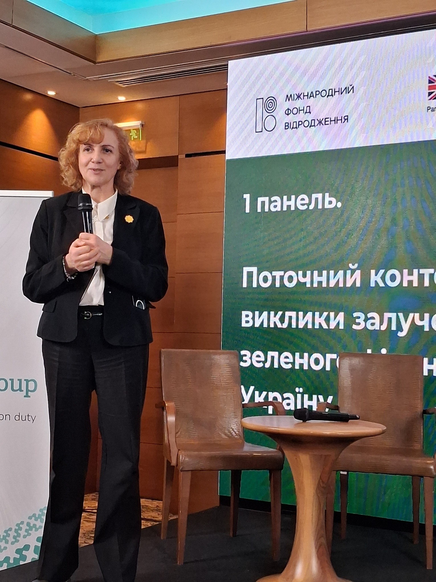 27 лютого 2026 року в гібридному форматі (офлайн м. Київ, отель Hyatt Regency Kyiv) відбувся міжнародний публічний захід “Зелене фінансування: від концептів до практичної імплементації”. Організація цього заходу стала можливою за фінансової підтримки Міжнародного фонду «Відродження» вмежахпроєкту«Дослідженнятаадвокаціяможливостейдля«зеленого»відновленняУкраїни», який реалізує офіс зеленого переходу - незалежний консультативно-дорадчий орган при Міністерстві економіки України та допомагає впроваджувати реформи в сфері зеленого переходу, енергетичної та кліматичноїполітикиУкраїни.ДіяльністьздійснюєтьсязафінансовоїпідтримкиАгенціїВеликоїБританіїз міжнародногорозвитку.